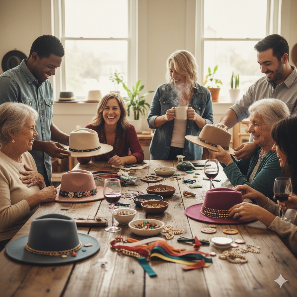 Celebrate creativity and connection with our Design Your Own Hat Crafting Parties — a hands-on experience where art meets joy. Perfect for birthdays, team bonding, bridal showers, or any special occasion, each session invites friends, families, and groups to unwind, get inspired, and create something beautiful together.