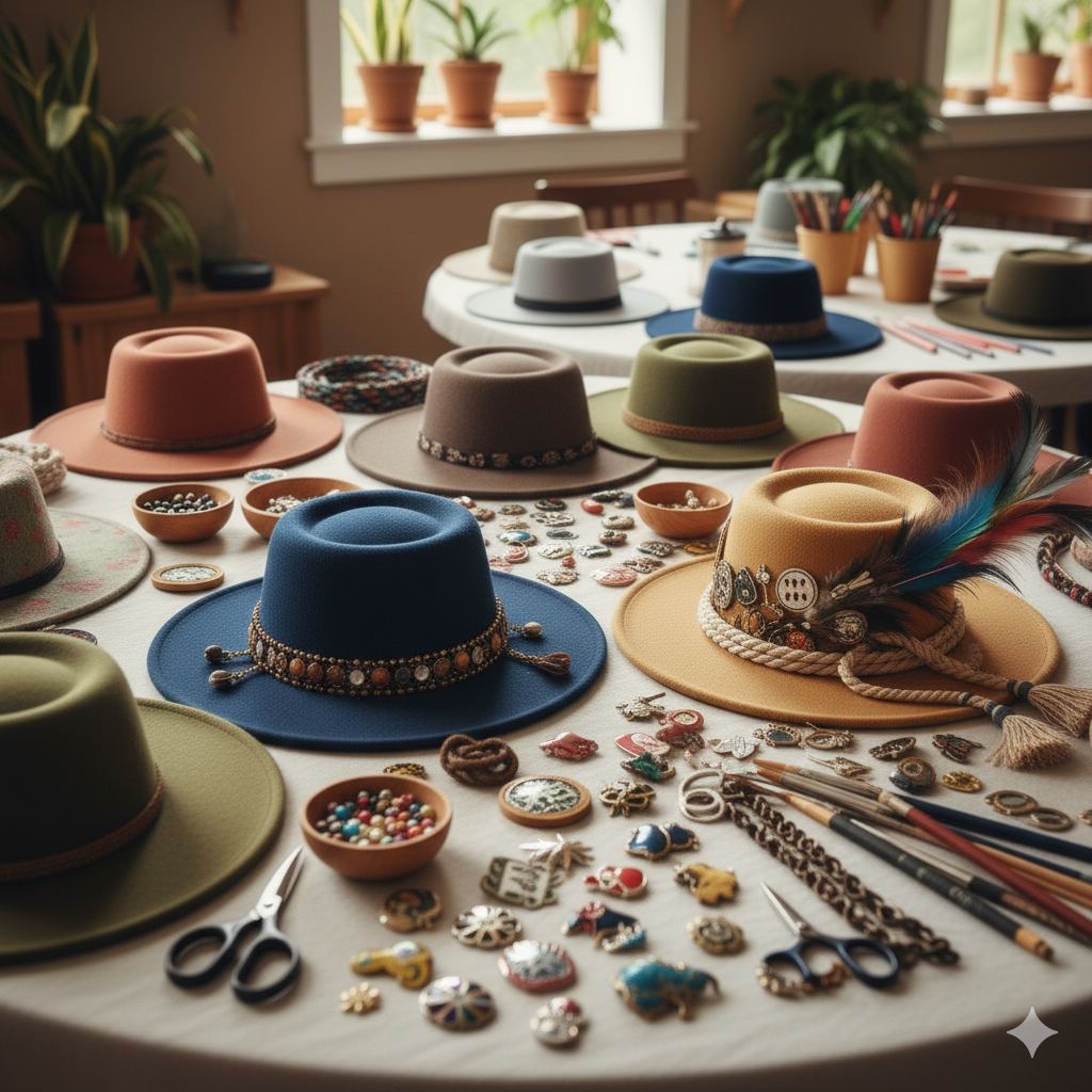Make your hat shine with our creative add-ons! Mix and match beads, feathers, bands, and more to design a piece that tells your story.